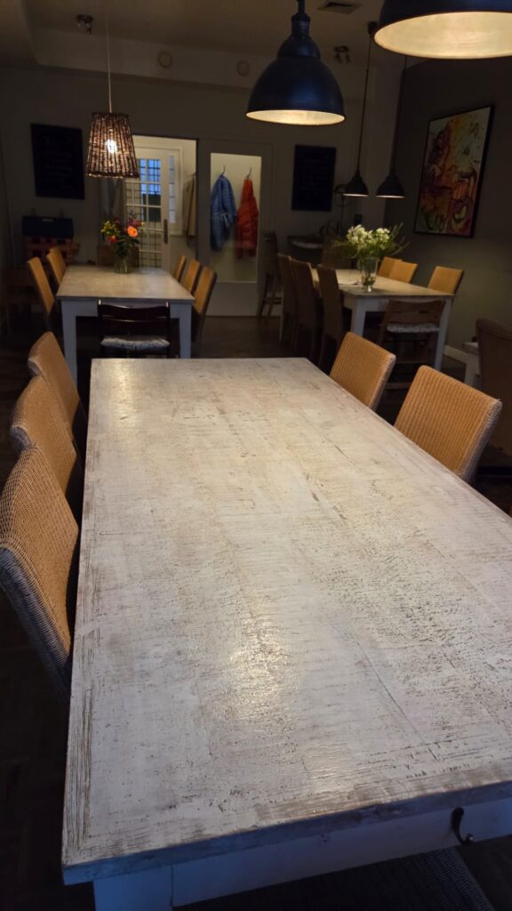 Nancy Haanappel (manager) gaf ons een indrukwekkende rondleiding door het hele Huis. Ze vertelde daarbij hoe belangrijk de vele vrijwilligers zijn: in de Huiskamers staan zij altijd klaar om bezoekers te ontvangen, vragen te beantwoorden en een kop koffie of thee aan te bieden. Tijdens de openingstijden is er in elke Huiskamer altijd een vrijwilliger aanwezig. Nancy benadrukte meermaals dat je natuurlijk nooit hoopt hier zelf terecht te komen in zo’n zware periode, maar dat het wél waardevol is om te zien hoe deze plek families ondersteunt. Dankzij dit bezoek weten wij nu des te beter waar we het met z’n allen voor doen. Het bekijken van de speciale Valken ’68-kamer, die door onze club wordt gesponsord, maakte dat gevoel alleen maar sterker.