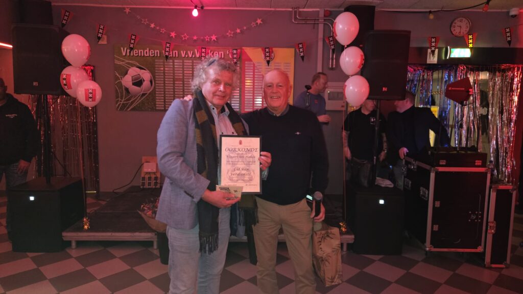 Als dank voor zijn uitzonderlijke werkzaamheden heeft het bestuur van Valken ’68 besloten dat Wiggert de eretitel Lid van Verdienste heeft verdiend. Daarnaast mag hij genieten van een heerlijk etentje bij Zand.
